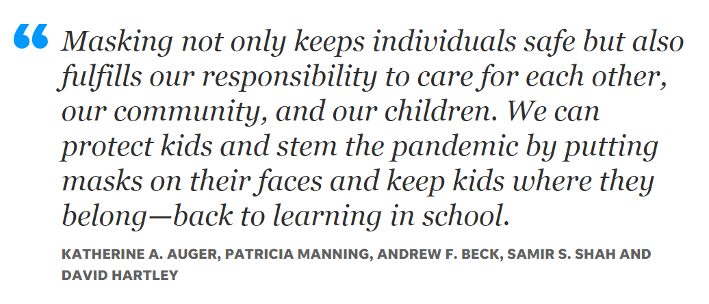 There are almost zero downsides to kids wearing masks. Lawmakers must stop passing buck.